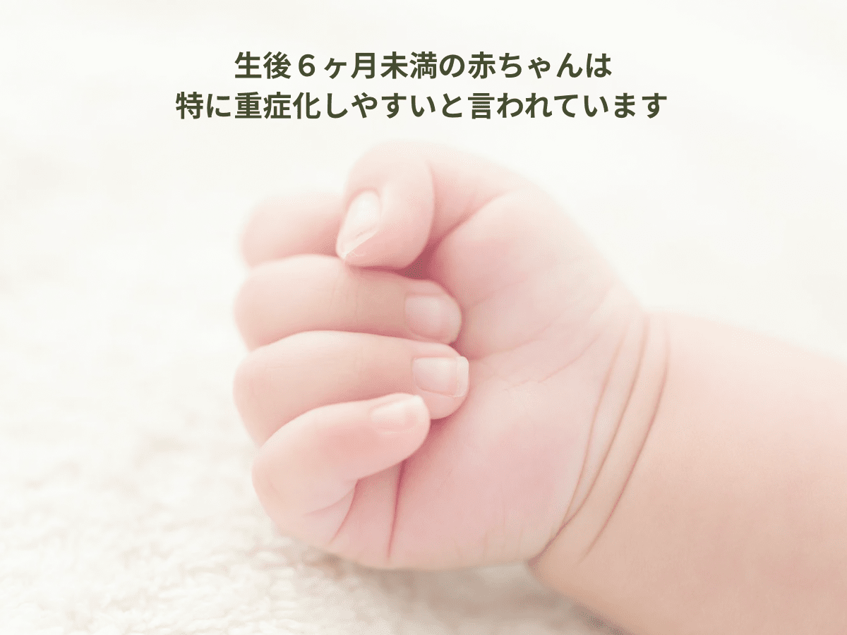 多くは風邪のような症状で終わりますが、生後6か月未満の赤ちゃんでは重症化しやすいことが知られています。